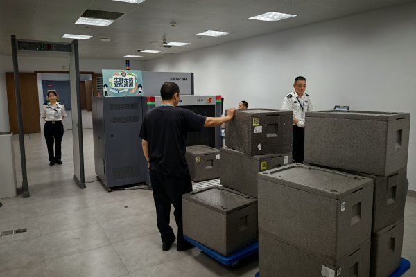 商家名人名家過安檢時反饋道,“以往我們貨物都是先來先過、后來后過,碰到高峰,后廚等不及,旅客送菜也受影響。現(xiàn)在有前置預約,速度快了很多,送過去的食材也更新鮮。”上線一個月來,“生鮮無憂”通道高效保障各類貨品647批,17.5萬件,其中生鮮冷鏈貨物23.28噸。