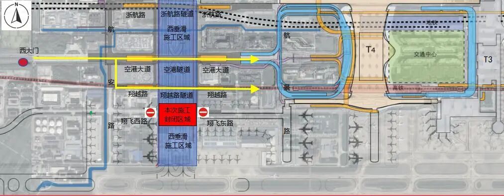 為確保杭州蕭山國際機場西垂滑配套項目順利推進,保障場內(nèi)交通有序運行,經(jīng)研究決定,對翔飛路實施永久封閉斷流施工?,F(xiàn)將有關(guān)事項通告如下: